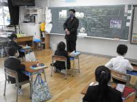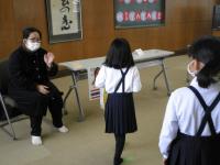 最後に1年生教室に入られ、「おうちの方や先生の言うことをよく聞いて賢くなってください。」とメッセージを頂きました。
