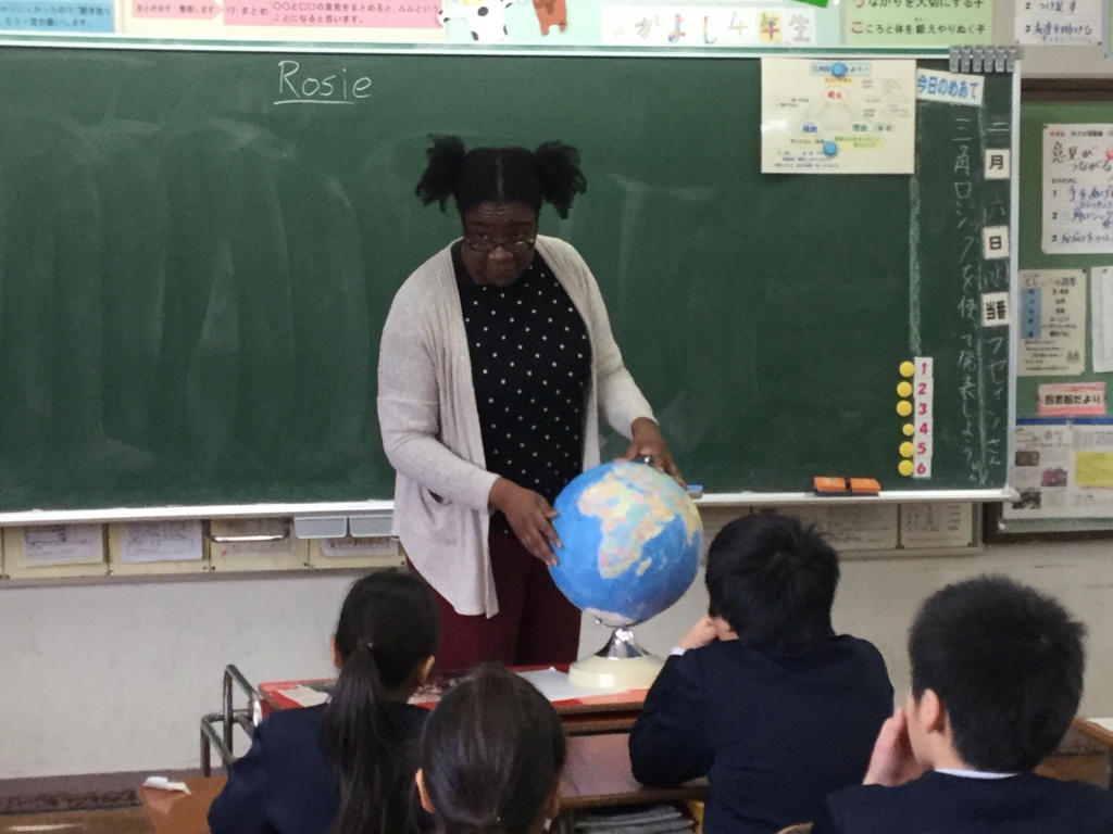 ロージー先生(低学年のALT)から、アメリカとガーナの2つの国について、