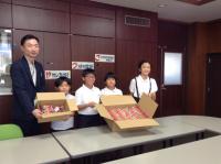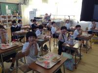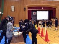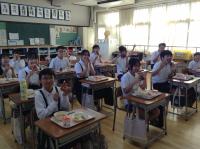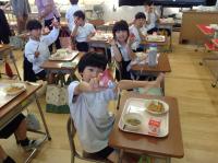 5年生の米作り体験でお世話になっているJA辰口からおにぎりをいただきました。5年生が代表でいただき、給食で全校児童がたべました。とてもおいしくいただきました。ありがとうございます。