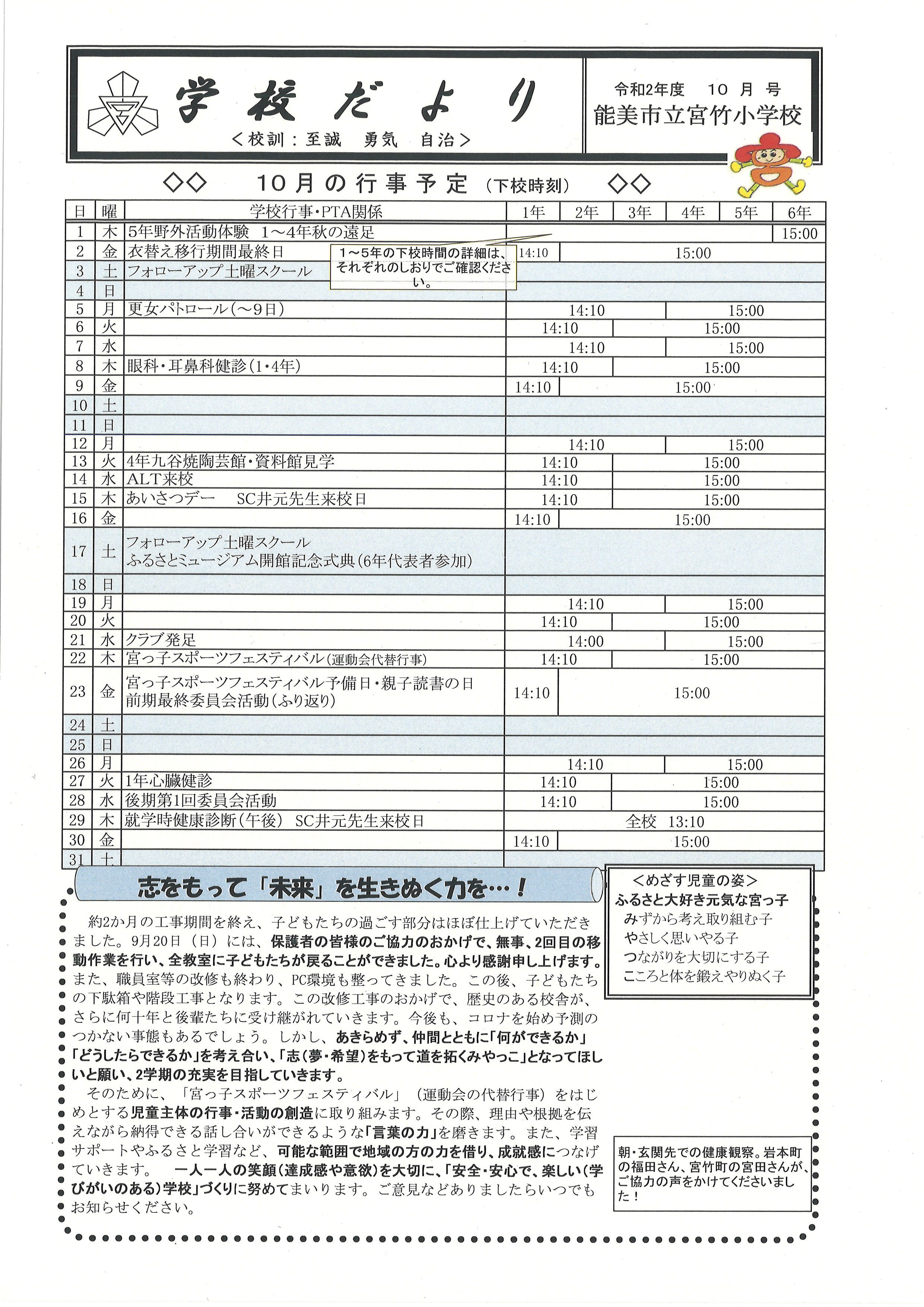 学校だより10月号を掲載します