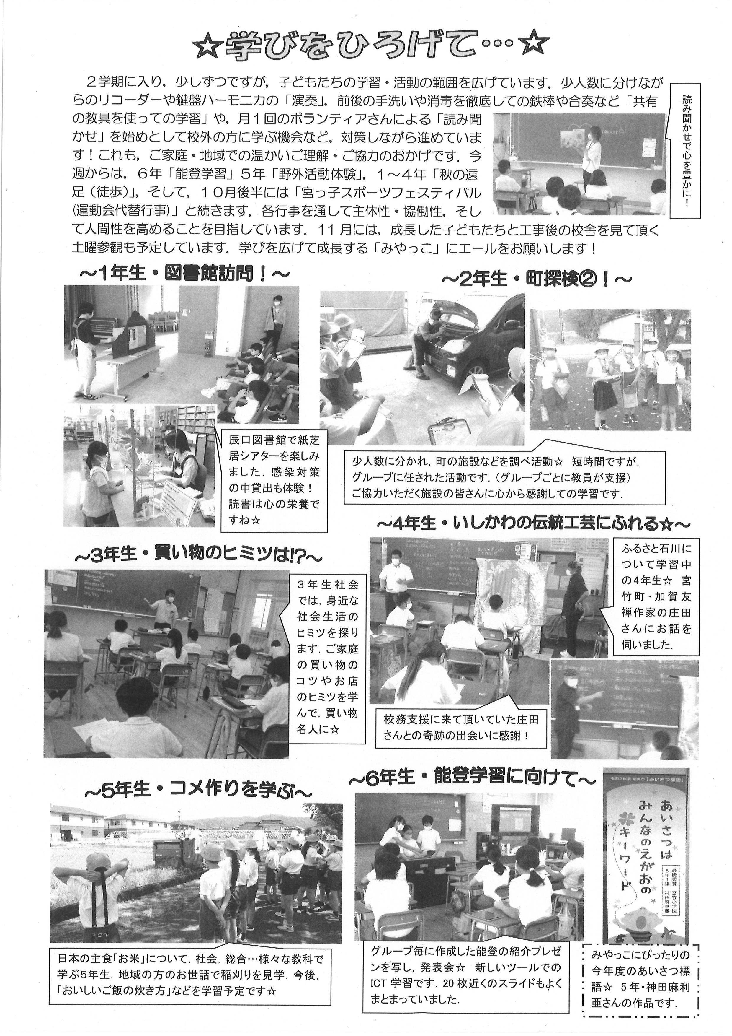 子どもたちは「新しい学校生活」の中で,想像力を働かせ,できることを工夫しながら児童会活動や授業をがんばっています。子どもたちの頼もしい姿も紹介しておりますのでぜひご覧ください。
