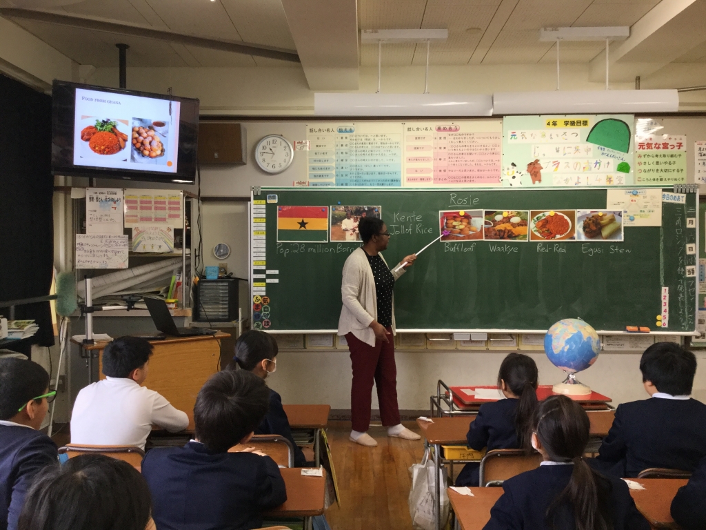 ロージー先生(低学年のALT)から、アメリカとガーナの2つの国について、