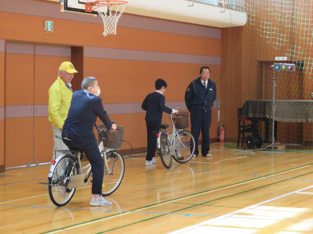 警察・交通推進隊の方に来ていただき、安全な自転車の乗り方を、