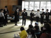 春のような日差しの中、4月から本校に入学予定の年長組のお子さんたちが学校にやってきてくれました。1年生たちは、今日のためにワクワクしながら準備をすすめてきました。