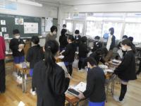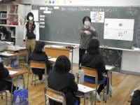 3年生では、「What's this?」というテーマで、自分たちで考えたクイズのやり取りを英語で行っていました。
