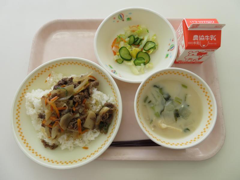 4限目が終わると、6年生が嬉しそうにしていました。今日は「卒業生お楽しみ給食」の日で、1~5年生とは少し違うメニューになっています。