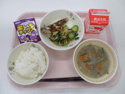 をいただきました。よく噛んで食べると、むし歯予防や食べ過ぎ防止、記憶力アップなど、体によいことがたくさんあります。一口30回以上を目標に、よく噛んで食べるようにしましょう。