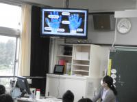 朝の学習タイムを活用して、養護教諭より手洗い指導を行いました。