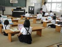 3年生は、算数。「大きな数」の計算の説明を3人グループで説明していました。計算の技能だけでなく、「なぜ、どうやって、そうなるのか」という説明力(論理力)の育成を大切にしています。
