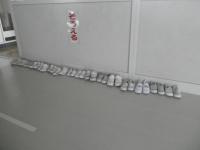 音楽室横の廊下に、きちっとズックが並んでいます!すばらしい!と覗いてみると…、