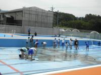 今年度の水泳学習を控え、今日は、5・6年生がプール掃除に励んでくれました。昨年度は改修工事があり、床面なども張り直したのですが、泥がたまったところを、しっかり磨いてくれ、美しい水色がよみがえりました!小プールも大プールも、明日にでも入りたいくらいの気持ちよさです。