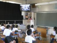 画面から全校児童・職員にお話ししてくださるのは、金沢大学准教授で地震などの防災に詳しい青木先生です。