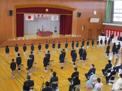 宮竹小学校にて令和4年度の入学式が挙行されました。元気な18名の入場!