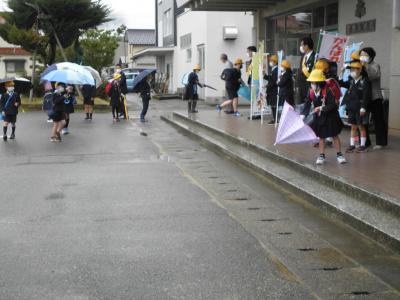 雨降りでカッパ登校が初めての1年生も、すてきなサプライズを喜んでいました。またまた何と!