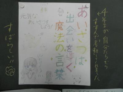 4年生の子どもたちが、「あいさつを、今よりもっと元気にしたいから」とポスターを作ったというのです!(総合などの学習の一部ではありません)