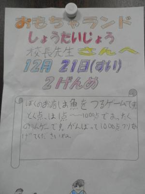 今日は、2年生や先生方を招待して「おもちゃランド」を開いて招待してくれる日です。おもちゃ作りだけでなく、楽しめるルールやわかりやすい説明など、相手(お客さん)を意識しての表現力に、4月からの成長を感じ、うれしくなりました。