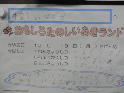 1・2年生同士で招待し合う中で、楽しめるルールやわかりやすい説明などを工夫していきます。きっと、笑顔いっぱいの時間になることでしょう。ステキな会に招待して頂き、うれしい限りです。とっても楽しみです。ありがとうございます。