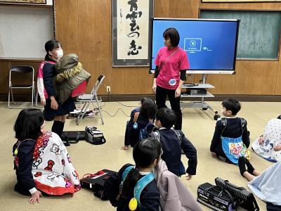福祉に関する学習を通して「だれもにやさしい町づくり」について考えている4年生。今回は「子育てネットワーク」のみなさんにご協力いただき、妊婦さん体験をさせていただきました。