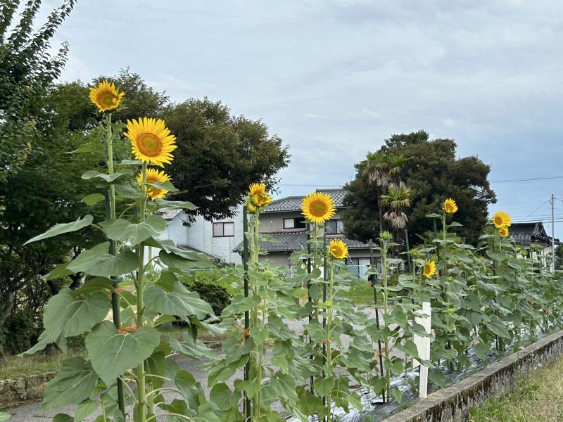 校庭にまいたひまわりの種が成長し、花が咲きました。