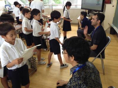 JAISTの方と交流しました。習った英語でインタビューをしました。