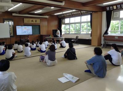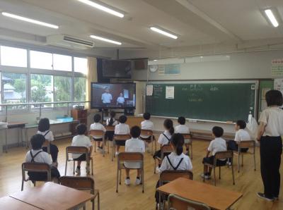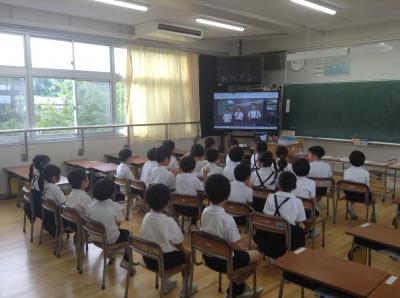 急に暑くなり、終業式は体育館に集合せず、各教室でリモートで行いました。