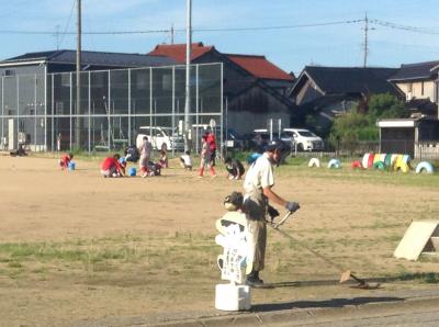 夏休みにはいった最初の日曜日、地域の方が15人程集まって、学校の周りの草刈りをしてくださいました。草刈り機を使いながらフェンスの間近や運動場の草刈りの作業はとても見事でした。宮和学童野球の関係者も一緒に草むしりをしてくださいました。とてもきれいになりました。暑い中、本当にありがとうございました。