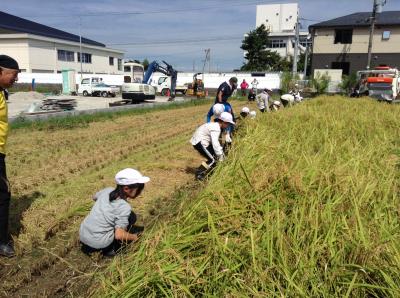 5年生は稲刈り体験をしました。農家の方、JAの方のご協力で5月に植えた苗が大きく育ち、無事稲刈りが行えました。