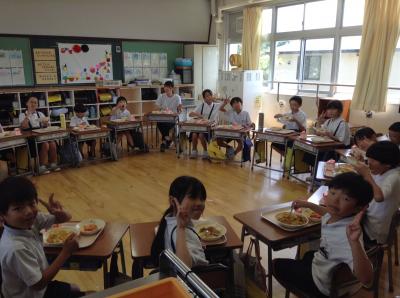たてわり班で給食を食べました。今年度はたてわり活動を充実させていますね。