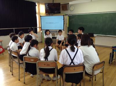 今年度はたてわり活動を充実させています。掃除の会議の後、そのグループで6年生が考えたゲームをしました。みんなで楽しむことができました。6年生、ありがとうございます。