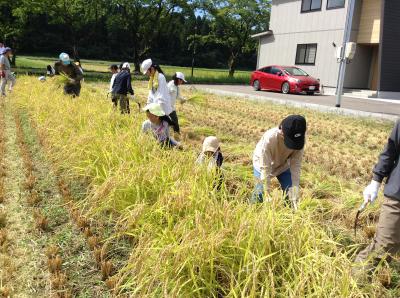 5年生が田植えをして育ててきた稲を刈り取る時期になりました。田植えの時と同じように、JAの方々、農誠会の方々のおかげで稲刈り体験をすることができました。今後は収穫祭をする予定です。