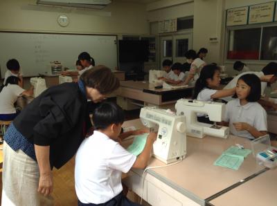 5年生にとっては初めてのミシンの学習、糸をつけたり、縫い方を学んだり、大変ですが、地域の方がサポートにきてくださり、上手に作業が進みました。今後は6年生にもサポートをしてもらう予定です。ありがとうございます。
