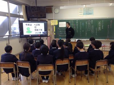 1月8日 3学期始業式と書初め大会が行われました。