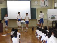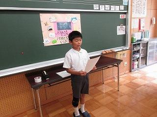 今月の歌を全校で歌った後、各児童委員会から今月の目標等が発表されました。