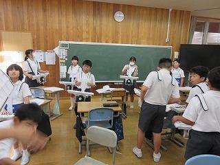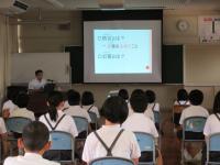 9月1日(金)、市の防災対策課の方に「防災」のお話をしていただきました。災害が起きたときの行動の仕方を教えてもらったり、ハザードマップや備蓄品を見せてもらったりしました。みんな、真剣な表情で聞いていました。