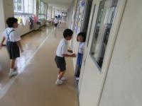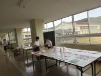 子どもたちが夏休み中にがんばった自由研究や工作、手芸が1階廊下に展示してあります。2階には自主学習ノートが展示してあります。友達の作品を見て、「じょうずだね。」「すごいね。」「私も作ってみたいな。」という声が聞こえてきました。作品展は8日(金)までです。ぜひ、見に来てください。