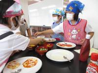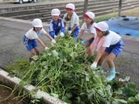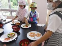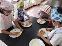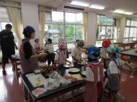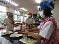 9月6日(水)に生活科の授業で、1・2年生がピザづくりをしました。2年生が丹精を込めて作った夏野菜を具材にして、餃子の皮で作りました。完成したピザに1・2年生は大喜び。みんなで舌鼓を打ちました。是非、家庭でも試してください。2年生の皆さん、おいしい夏野菜をありがとうございました!