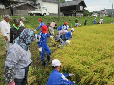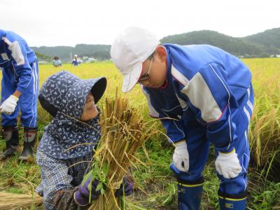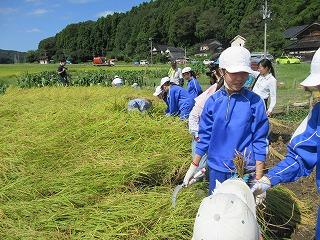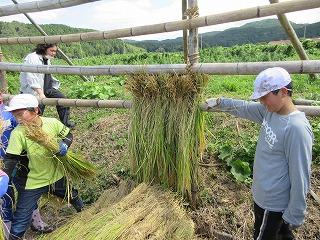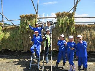 稲刈りの後は、5年生ははざ掛けを体験し、6年生はコンバインに乗せていただきました。お世話下さった「たかねをクラブ」やたくさんの地域の皆様、本当に貴重な体験となりました。ありがとうございました。