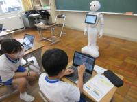 5・6年生が人型ロボットを使ってプログラミング学習を行いました。プログラミングした言葉や動作を送り、人型ロボットを動かすという体験を楽しみました。上級編として、「ある言葉を言ったら人型ロボットがこう答える」というプログラミングにもチャレンジしました。クイズ形式にして、上手に作成する子が多かったです。11月2日の非行被害防止講座にも登場します。どんなことをみんなの前で伝えてくれるのか楽しみですね。