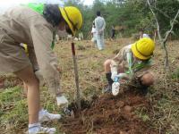 森林を守り後世に残していくことの大切さを学び、三井町漆原地内で「あての木」の植樹を行いました。