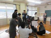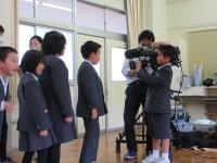 NHK金沢放送局のご協力により、放送に関する職業を体験する授業が行われました。5時間目に、全校で、放送の仕事や仕組みについてお話を聞き、カメラマン体験や中継車見学をさせていただきました。6時間目には、5・6年生が番組制作体験を行いました。自分たちで考えた「能登麦屋節」と「おいしい給食」の台本をもとに、2グループに分かれて、2分間程度の番組制作をしました。制作した番組は、1月12日、19日に放送される予定です。楽しみですね。