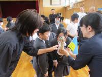 児童には一人ひとりに手作りのキャンドルを、学校には幸運を呼ぶお守りの人形とカチューシャをいただきました。ウクライナ語で「ありがとう」は「ジャックユー」と言うそうです。たくさんの元気もいただきました。本校に来てくださって、本当に ゛ジャックユー!”