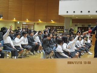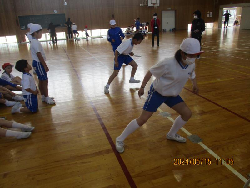 その後に行った、5・6年生による模範演技に、1~4年生のみんなは、目を輝かせ、