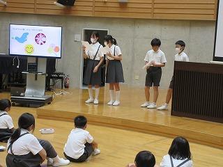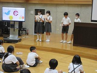 9月6日(水)に、人権集会がありました。2学期最初の人権集会は、健康委員会が発表してくれました。学校生活の一コマを劇にすることによって、「廊下や階段を歩くこと」や「温かい言葉づかい」が大切だということをみんなで確かめることができました。その後は、縦割り遊びをしました。全校の弾ける笑顔を見ることができて、本当によかったです。2学期も、みんなで仲良く過ごしましょう!