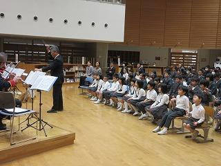 石川県警音楽隊の方々が来校され、門前高校吹奏楽部と合同で演奏会をしていただきました。