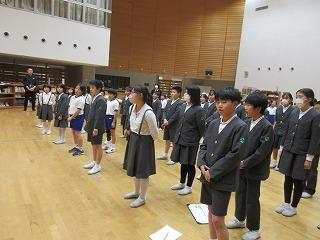 全校集会で9月の生活目標、委員会目標の発表がありました。9月は、前期最後の月になります。目標が達成できるよう、協力し、がんばりましょう。
