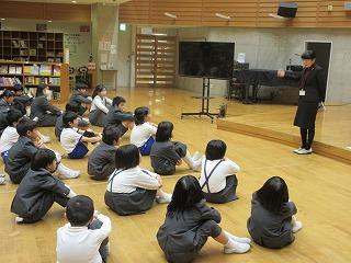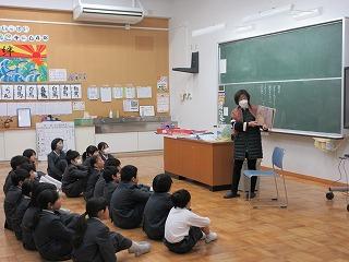 11月15日、1・2年生が門前図書館主催の親子読書講座に参加しました。読み聞かせの先生に来ていただき、読み聞かせと保護者向けの講話をしていただきました。子どもたちからは、「初めてのお話が聞けてよかった」「クイズが楽しかった」という感想が聞かれました。これからも親子で読書に親しめるといいですね。