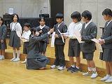 児童会役員の任命式がありました。りりしく抱負を述べる6年生たちの姿に、下級生もしっかり聞き入っていました。