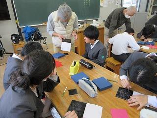 6年生が卒業制作で、沈金パネルの作成に取り組みました。