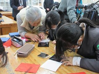 6年生が、輪島漆芸美術館に行って、卒業制作の「輪島塗沈金パネルづくり」をしました。事前に考えた下絵をもとに削り、沈金体験をしました。はじめは、うまく削ることができなかった児童も、指導者の方に教えてもらいながら、上手に作品を仕上げていました。完成したパネルは、来年の1月~2月に漆芸美術館に飾られます。卒業式にも飾る予定です。