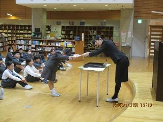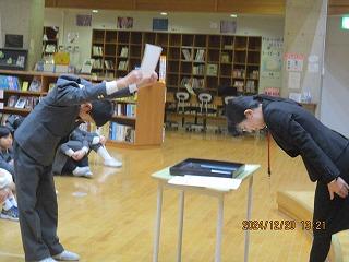 終業式では、表彰式、校長先生のお話、冬休みの生活のお話がありました。きまりを守って楽しい冬休みを過ごしてください。そして、楽しい思い出いっぱいにして元気に3学期登校してください。